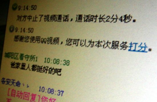 在押人员蓝某通过qq视频与家中的老父亲得以相见