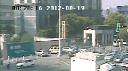 图②:协警向自己的左面一躲,奥拓也转过去。(车尾方向监控拍摄)
