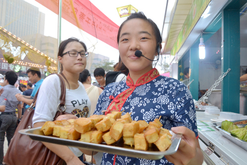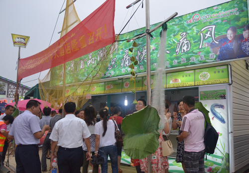 啤酒节场馆里,微山湖“湖鲜”的摊点格外引人注意