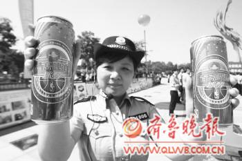 警方展示过期后被重新打码出售的啤酒。张晓鹏 摄