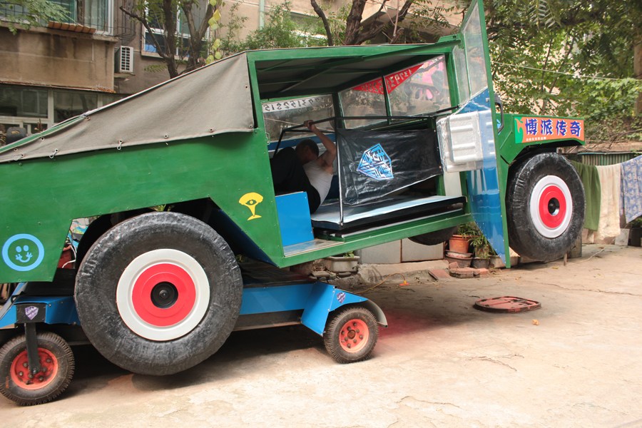 8月30日,刘庆博和他的悍马车模型,趴下就是个悍马,站起来则是机器人。张爰杰