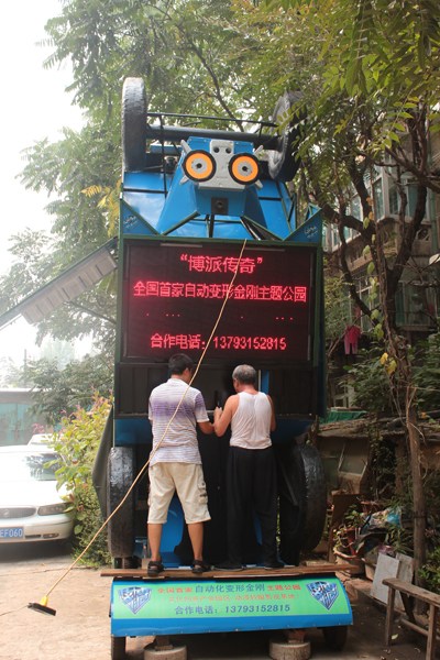 8月30日,刘庆博和他的悍马车模型,趴下就是个悍马,站起来则是机器人。张爰杰