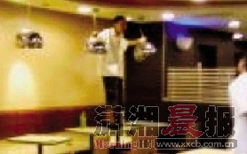 9月4日,火车站麦当劳,流浪汉遭赶后跳上桌子,抓住吊灯抗议。微博图
