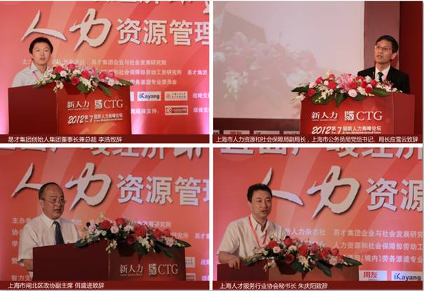 2012年9月6日,由《新人力》杂志社、易才集团企业与社会发展研究院主办,中国劳动学会、中国人力资源和社会保障部劳动工资研究所、易才集团(CTG)协办,中国劳动学会劳务经济与(境内)劳务派遣专业委员会提供学术支持的以“以直面严峻经济形势 人力资源管理创新与变革”为主题的2012第七届新人力高峰论坛在上海隆重拉开帷幕。上海市人力资源和社会保障局副局长、上海市公务员局党组书记局长应雪云、上海市闸北区政