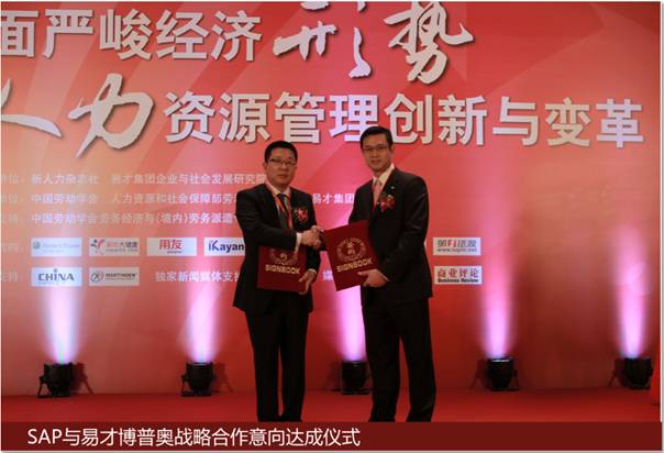 值得关注的是,在本届论坛上还举办了中国最专业的人力资源及相关流程外包服务供应商——易才集团旗下的专注人才开发管理的“易才博普奥公司”与全球最大的企业管理和协同化商务解决方案供应商——“SAP”的战略合作意向达成仪式。据记者了解,此次战略合作意向达成,旨在通过专业的人力资源服务与领先的IT技术和互联网应用的融合,为企业人才战略落地和管理转型升级提供更加灵活、高效和多元化的人力资源管理整体解决方案,在发挥双方各自优势的同时,以良好的商誉和丰富的资源,强强联手帮助中国企业实现“蕴韬略、更卓越”的管理目标。
