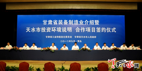 在随后举行的天水市投资环境说明暨合作项目签约仪式上,天水市与山东有关地市总投资86.16亿元的23项合作项目举行集中签约。签约项目中,工业项目17项,总投资46.68亿元;农业产业化项目2项,总投资5亿元;现代商贸类项目2项,总投资31.8亿元;文化产业项目2项,总投资2.68亿元;贸易类项目2项,年贸易总额10.1亿元。包括青岛海尔、青岛海容电器、青岛铭联投资、青岛中能、青岛金王等在内的多家青岛企业参加签约。