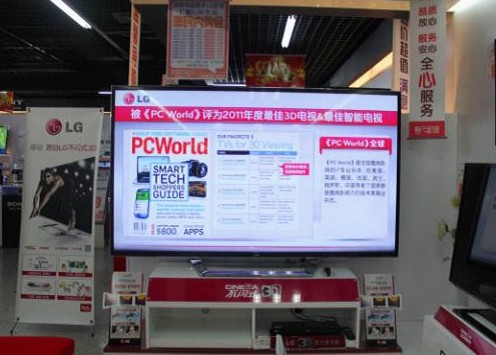 近日,随着多家电视厂商的样机先后曝光,超大屏4K超高清电视俨然成为行业和媒体的焦点。然而,尽管各品牌大屏超高清电视相继“亮相”,但何时上市却是个未知数,这时,谁能抢占先机,将产品量产上市,就显得至关重要。 在这场大屏超高清的”亮剑”中,LG 电子先发制人,率先将超大屏4K电视机量产上市——2012年9月13日,全球首台84吋Ultra超高清3D电视(LG 84LM9600)进驻国美,正式开卖。