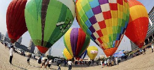 热气球从八大峡广场腾空而起。李紫恒 摄