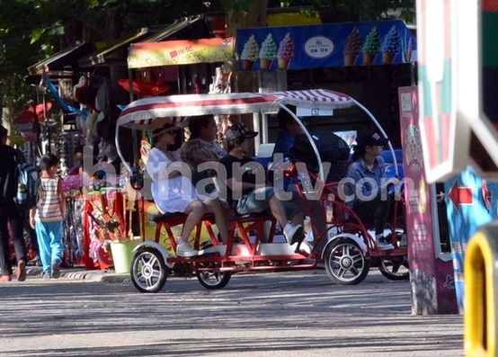 李小璐挺大肚逛公园 贾乃亮嘟嘴配合爱妻自拍(组图)