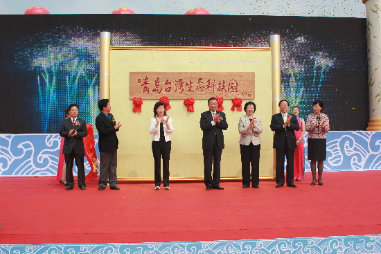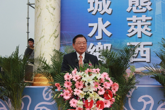 台湾海峡交流基金会董事长江丙坤致辞,祝贺青岛台湾生态科技园揭牌
