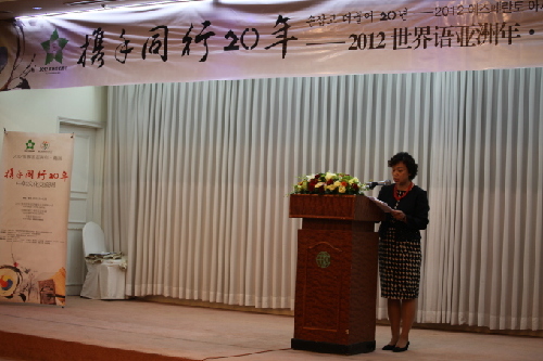 在开幕式致辞中,中国报道杂志社社长兼总编陈实介绍,2012年,国际世界语大会和一系列世界语活动都在亚洲举行,因而被称为“世界语亚洲年”,今年7~9月,相继在蒙古、越南等地陆续推出了以世界语为平台的系列国际文化交流活动。今年是中韩两国建交20周年,将此次活动的主题定为“携手同行20年”就是对此表示纪念和祝贺。