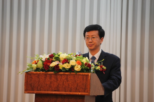 在2014青岛世界园艺博览会主题推介会上,青岛市委宣传部副部长兼市政府新闻办主任魏胜吉向到场嘉宾介绍了近年来韩国与青岛的交流合作以及世园会情况。
