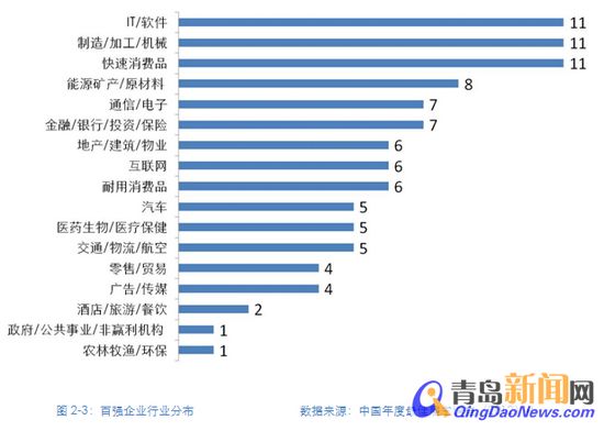 百强企业的行业分布来看,IT、制造业、快速消费品行业并列第一,分别占据百强榜单的11席。行业体量大、企业实力强、员工福利待遇优厚等均在一定程度上促进了这些行业的企业晋级最佳雇主百强榜单。此外,在经济实力上并不占据优势地位的政府/公共事业/非赢利机构行业和农林牧渔/环保行业均有企业晋级最佳雇主百强榜单。