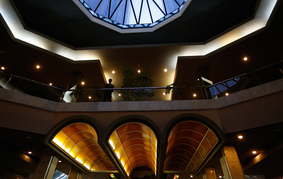 2012年9月18日,平壤,一个男子站在一个饭店的楼梯上。Vincent Yu/摄