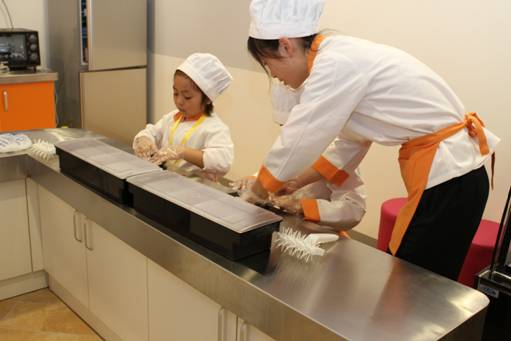 上午十点,星星妈带着星星进入了比如世界,因为第一次来比如世界,星星一脸兴奋。在星星妈不干预的情况下,星星自主选择了面点师的职业进行体验。穿上面点师的小服装,戴上面点师的“高帽子”,还真有一种高级面点师的感觉。与其他的小朋友一起,星星在比如世界工作人员的帮助下,和面、揉面,造型、烘培,每一个环节都无比的认真,最后出炉的面点还真挺漂亮,最让星星兴奋的是,通过自己的劳动,还收获了应有的报酬:比如币,星星看着自己的劳动成果开心的笑了。