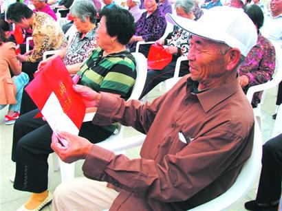 去年国庆节前,家住城阳区夏庄街道王家曹村的黄培芳老人收到了子女送来的礼物——一份养老保险缴费单。15年的养老保险费一次性缴清后,黄培芳在年底满60周岁时就可领到养老金。黄培芳说,“现在我们村里子女孝顺老人,时兴的是送养老保险了。这样,儿女们减轻了负担,老人们也没有了后顾之忧。”近日,记者又来到了胶南市尹家村见到了尹衍俊老人,“今年提标了,7月份开始每月涨了55块,我现在一月能开473块钱了!”老人激动地告诉记者。