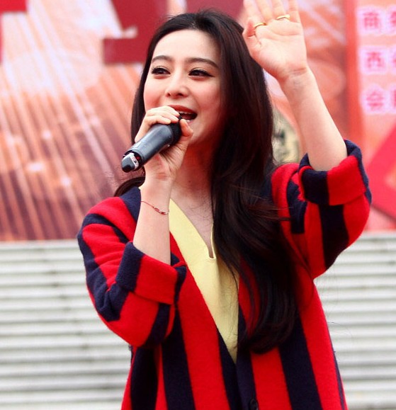 范冰冰黑丝金裙搭条纹装惊艳 西安捞金遇汪涵(组图)