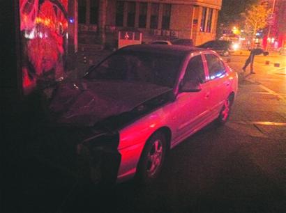记者沿着地面上遗留的汽车机油,找到了远离现场将近50米的伊兰特轿车,这辆轿车冲开了两个人行道旁的石桩,撞在百盛大厦的墙面上停了下来。这辆车的右侧有大量划痕,汽车的发动机和音响都开着,但是找不到司机。目击了事故发生全过程的的哥李师傅告诉记者,这辆伊兰特轿车是从曲阜路左拐进入中山路的,由于车速太快,直接撞在了沿着中山路向北驶去的三菱越野车上,伊兰特轿车原地打了一个转,调头180°冲向了百盛大厦方向的人行道。 “那个司机撞了车之后又撞在石桩上,司机就打开车门下了车,可是轿车自己还在往前跑,他手抓着方向盘被汽车又带着跑了二十多米。 ”李师傅称,这辆轿车应该是自动挡的,事故发生后司机没有摘挡就下了车,所以汽车一直在行驶状态中。
