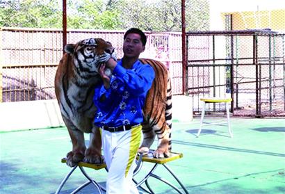 昨日中午,记者在青岛森林野生动物世界看到,园区的4处停车场已满满当当。在动物表演场,凶猛的老虎和狮子在驯兽师的指挥下表演了精彩的节目。