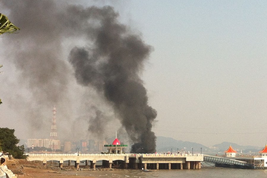 10月3日早,厦门鼓浪屿三丘田码一船只起火,网友称起火期间还伴有一声巨大的爆炸声,大火烧了将近一个小时,起火后半小时左右海警到达现场。厦门市筼筜派出所教导员思明博警称当时四艘小船靠在一起,其中一艘船失火,蔓延至旁边两艘船,确认无人员伤亡。图/CC非同凡响
