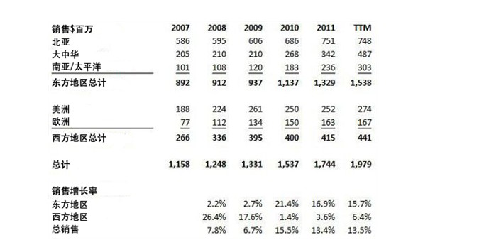 NU SKIN是个关于增长的故事。个人保养品市场全球性增长,尤其是在新兴市场。越来越多的消费者进入中产阶级,对化妆品产品产生更多的需求,相应也会产生更多的收益。请参照下列图表,您可以看到,过去五年以来尽管全球发生金融危机,全球个人护肤品市场已成长了大约百分之七点五以上。NU SKIN的直接竞争对手为同为直销行业的雅芳(Avon)、玫琳凯、以及安利(Amway)。