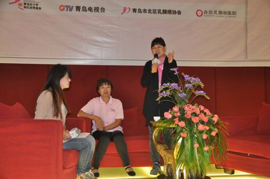 上午9时许,北京电视台编导、《珍爱乳房》的作者、抗癌斗士、青岛红十字粉红丝带宣传大使——叶丹阳,专程来到青岛乳癌患者交流会,与岛城乳癌患者们面对面交流,分享了抗击乳癌的经验,同时向广大市民传递着“勇气——坚信一个没有乳腺癌的世界”。