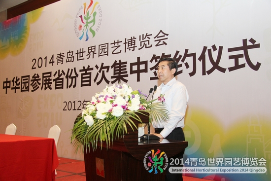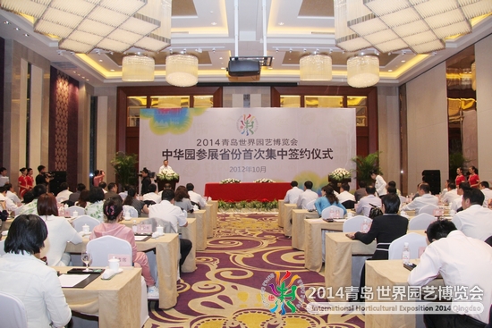 2012年10月12日,2014青岛世园会中华园参展省份首次集中签约仪式在青岛海景花园大酒店隆重举行。青岛市副市长、青岛世园执委会执行主任王建祥出席仪式并致辞,上海市、重庆市、河北省、内蒙古自治区、陕西省、宁夏回族自治区、青海省、海南省三亚市、吉林省辽源