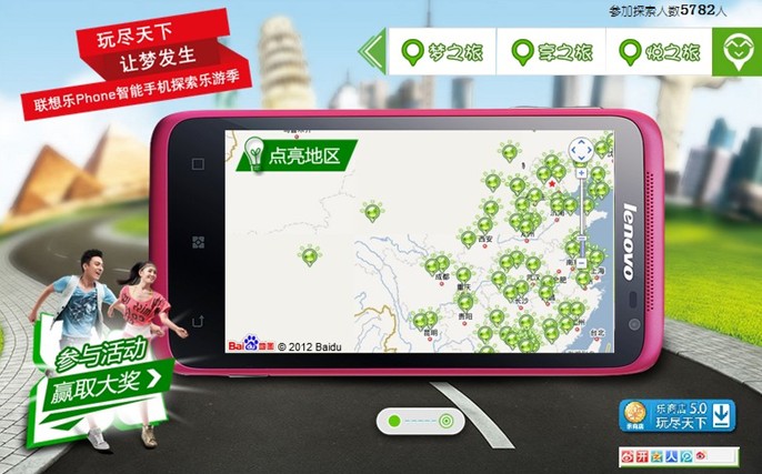不为平庸的生活所束缚,才能拥有自由的灵魂。勇敢探索未知的美好世界,才能发现最真实的自己。继音乐达人、运动达人在全国掀起全民音乐潮、运动潮后,“玩尽天下,让梦发生”联想乐Phone智能手机探索乐游季大型主题活动盛大起航,邀您加入联想乐Phone“Discovery Doer探索达人”活动,更有超丰富梦想旅游大奖及热门智能手机等你赢取,你准备好了么? 铁马秋风塞北,多情西子湖畔。恋恋风景,你的心是否早已按捺不住?行行摄摄,记录祖国大好河山。拿起手机即刻加入联想乐Phone“Discovery Doer探索达人”阵营,随时随地与朋友乐享你的美妙旅行心情! 联想乐Phone探索乐游记,点亮最美中国