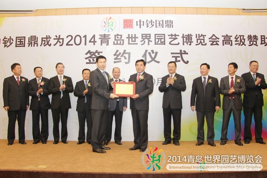 2012年10月16日,世园执委会与中钞国鼎投资有限公司签署协议,中钞国鼎正式成为2014青岛世园会票务服务类高级赞助商。青岛市副市长、世园执委会执行主任王建祥,世园执委会执行副主任、秘书长李奉利,中国印钞造币总公司副总经理张数沧,中钞
