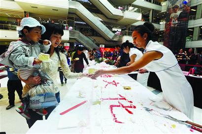 昨天上午,“青岛日报社、青岛报业传媒集团2012读者节”开幕式在李沧宝龙广场盛大开幕。市领导、青岛日报社和报业传媒集团的领导以及读者共同切开特制的18米巨型蛋糕一起分享,两万名市民参加了昨天的活动,现场订报、读者接待、微尘售报、便民服务等丰富多彩的活动让市民赞不绝口。(记者 于滈 摄)