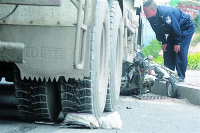 “冠县路附近的立交桥下发生车祸,一名骑摩托车的男子被混凝土搅拌车碾过,流了一大摊血。”昨天上午11时左右,市民王先生拨打早报热线82888000报料,120急救医生已经赶到,为重伤的摩托车司机止血后,将他紧急送往医院抢救。记者随即赶到市立医院急诊室,救护车也是刚刚赶到,医护人员将双腿血肉模糊的伤者推进抢救室。记者看到,伤者因为失血过多脸色惨白,已经昏迷不醒。急救医生身上和救护车上有大量血迹。急救医生称,他们赶到时这名男子倒在混凝土搅拌车后面,双腿被重达数吨的混凝土搅拌车碾过,已经粉碎性骨折,更关键的是动脉血管破裂血流不止,随时可能有生命危险。