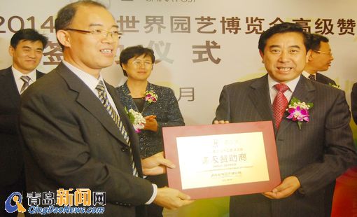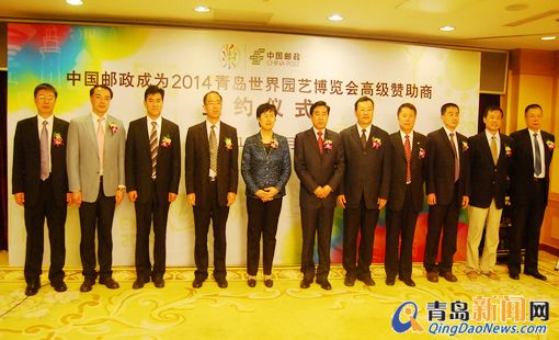 青岛市政府副市长、世园执委会执行主任王建祥,世园执委会秘书长、青岛世园局局长李奉利,世园执委会副秘书长齐树青,山东省邮政公司副总经理李亚利、山东省集邮公司经理宋立华、山东省邮政公司函件局局长贾进强、青岛市邮政局局长李明光等领导出席签约仪式,王建祥为青岛市邮政局颁发2014青岛世园会邮政类高级赞助商纪念牌。