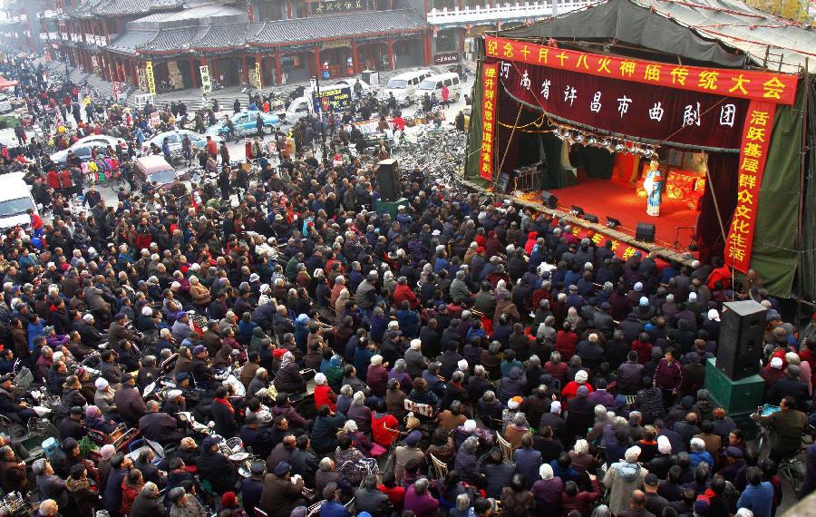 河北省邢台市清风楼前,百姓在欣赏戏曲演出(2011年11月14日摄)10年来,通过加大投入、改革机制,我国的公共文化服务体系建设进入快车道,文化信息资源共享工程、广播电视村村通、农家书屋、农村电影放映工程、乡镇综合文化站建设工程等一大批文化惠民工程顺利开展,基本覆盖全国有条件的行政村,正在向自然村延伸。 10年来,文化在我国发展建设中的地位不断提升。从党的“十六大”报告提出文化