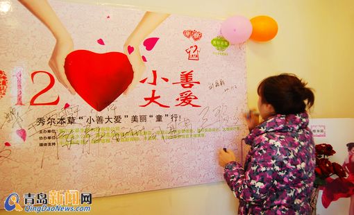 爱心人士在爱心墙上签名