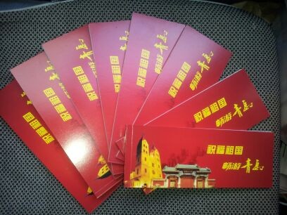 《祝福祖国 畅游青岛》明信片册,是以邮资明信片形式,展现岛城经典城市风光及文化,其中还附有一张专题红色祝福卡。册内每张明信片展现一个主题景点,市民可以对青岛进行更全面的了解。同时,可用副券优惠价格到景点旅游。大家可在享受文化视觉盛宴和切实体验惠民政策的同时,将自己的感受和情怀凝成对祖国和家乡的寄语。通过所附“红色祝福卡”回寄到活动组委会,组委会将组织对回寄寄语进行评选,对优秀寄语予以奖励。