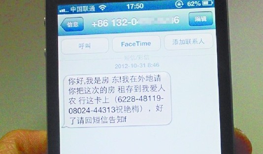 记者从警方了解到,近期有不少岛城市民反映接到过类似冒充房东催交房租的短信,这也算是短信诈骗的一种新花招。对于这类短信诈骗的手法,警方表示骗子多利用时间上的巧合,比如在月末或者月初需要交房租的时候发送类似短信,这样就容易让人相信。