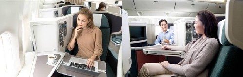 想要享受一次极致舒适之旅,不妨搭乘屡获殊荣的国泰航空全新商务舱,享受高雅舒适的根据人体工程学的原理设计的座椅,体验绝无仅有宽敞的机上私人空间。国泰全新商务客舱座椅不但舒适而具有现代感,而且充分兼顾到乘客拥有的私人活动空间,乘客于客舱内的睡眠、餐膳、工作、阅读、视听娱乐及歇息等需要均照顾周全。椅背呈翼状,如翅膀般保护乘客的私人空间,却设有相对宽敞的活动范围。座椅的摆放角度经过细心考虑,方便乘客在就座和休闲放松的时候拥有最大的自由度,既能观赏窗外景致,又能与旅伴闲聊沟通,尽享飞行快乐。控制器位置触手可及,不论调较私人电视屏幕设定、运作机上娱乐系统,还是调节座位高度均非常方便。轻轻按键,全新座椅能够转换成一张完全放平的床,是市面上商用客机使用的最宽最长的睡床之一。乘客可以最自然的睡眠姿势入睡。在睡眠中,无论是蜷缩在一侧,还是向两侧摊开双臂,都完全不会受到任何阻碍。此外,全新商务舱为乘客预留了更多私人储物空间,让随身物品伸手可及:小型储物柜里备有隔音耳机及镜子,方便存放眼镜及手机等私人物品。打开柜门,轻轻按键,即可拉出私人电视屏幕,享受AVOD随选式视听系统。