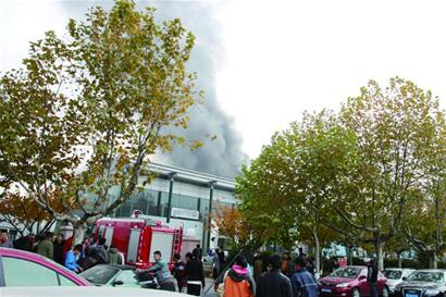 记者闻讯赶往事发现场,在距离现场约1000米处,记者看到车行上空飘着滚滚浓烟,还夹杂着些许明火。记者前行至车行大门处,由南向北的3个铁门均已被封锁,路边停着十几辆消防车。北门口还聚集了百余名群众围观,一股浓烈的烟味呛得人非常难受。