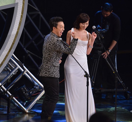 林志玲穿纯白女神装露巨乳纤腰 嘟嘴亲黄渤(组图)
