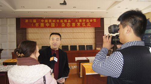 (中国民间书画研究会副会长刘利江接受媒体记者采访)