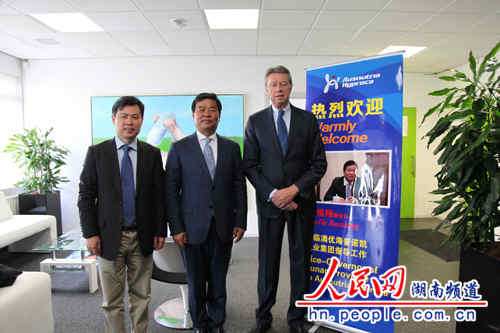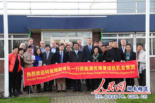 湖南省副省长何报翔跟荷兰澳优海普诺凯乳业集团高管人员合影