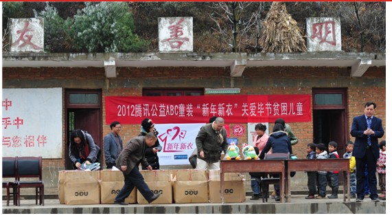 据悉,腾讯“新年新衣”年终公益项目贵州片区的捐赠物资为1000件ABC品牌新棉衣,毕节市赫章县救助站和妈姑镇穿洞村定然小学两个捐赠点的240多名孩子穿上了“新年新衣”在贵州片区的首批新棉衣。“新年新衣”爱心车队、黔中早报、腾讯网的工作人员、著名诗人赵丽华、微博名人五岳散人、《凤凰生活》副主编邢艺等爱心人士,参与了此次毕节“新年新衣”的捐赠活动。