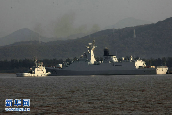 资料图:中国海军舰艇编队赴西太平洋训练,图为“马鞍山”舰即将启航。
