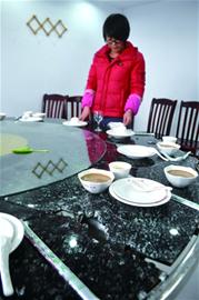 昨天中午,记者在徐先生开的火锅城二楼一个房间里看到,炸裂的桌子还摆在那里,桌面已经破碎不堪,裂口从桌子的一端一直延伸到另一端,最宽处达10厘米。“事发当天中午,在这屋里吃饭的是我的熟客,他们在为一名年过七旬的老太庆祝生日。”徐先生说,当时客人们落座后,服务员将加热开关打开,没过多久,就发生了桌面爆炸事件。“当时客人们都吓傻了,尤其那位老寿星,吓得浑身打哆嗦,很多人衣服上还沾着玻璃碴。”这家火锅城的服务员告诉记者。
