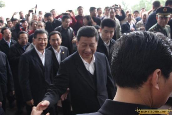 12月8日,习近平来到深圳莲花山,向邓小平雕像敬献花篮,除了广东现任官员陪同之外,四位曾经陪同邓小平南巡的老同志也有出席仪式。图为习近平与民众握手。