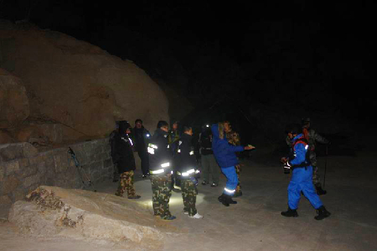 9日中午0时30分许,救援官兵将3名驴友送到了山下安全地带。(陈志伟 李豹松)