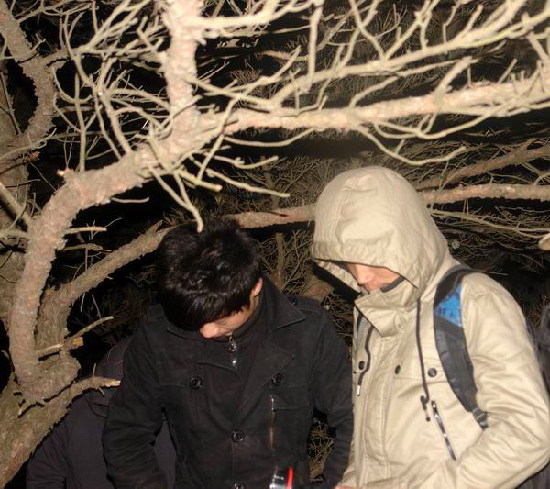 晚上11时,在搜救行动持续了6个小时后,终于找到了被困人员。此时3名驴友蜷缩在一处山凹处冻得瑟瑟发抖,看到前来营救的消防救援官兵非常兴奋,并一个劲的向救援官兵道谢。由于山中天气寒冷,消防官兵来不及休息,决定立即护送驴友下山。