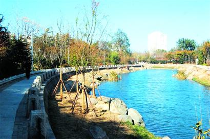 记者日前来到海泊河流域发电厂桥附近看到,桥两侧已建起一条宽达近10米的景观带,种上了白蜡、红叶石楠等景观树种,沿岸垂柳依依,且在岸边建起了护坡。人行道上用的是透水地坪,不仅能起到透水的作用,而且十分美观。漫步在景观小径上,仿佛来到环境优美的公园。而在海泊河公园内,河道内部绿化景观建设已初显效果。此前海泊河河道内没有绿色植物,通过改造,原本空荡荡的河道被装饰一新。