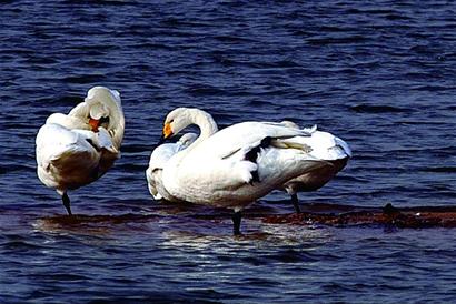 在园区的湖泊中,你可能会看到成群结队的国家二级保护珍禽大天鹅在湖内嬉戏,而体型较小的赤麻鸭、绿翅鸭、针尾鸭则在湖内悠闲游动;在园区沼泽池塘和林下草丛,你或许会发现几只蹦蹦跳跳的金线蛙、中华蟾蜍;而走在山间小路上,春秋季节多有的极北柳莺、夏季常出现的黄鹂会为您 “唱歌”。此外,体重仅5克、园区内冬季偶见的最小鸟戴菊;园区灌木丛内数量稀少的迁徙鸟红点等珍稀鸟类还等着你的慧眼发现。