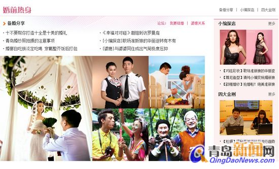 值得一提的是,此次全新改版,在风格上力主突破传统,大胆启用“大图模式”,将最热最潮的婚嫁资讯与时尚大方的图片相结合,将岛城婚嫁行业的全方位信息,集中综合展示,给网友以耳目一新的感觉。“拍婚纱照、订酒店、选钻石、找婚庆、选婚纱、定跟妆、寻跟拍、找婚车、备婚分享、喜宴论坛、征婚交友……这些你统统可以从青岛新闻网婚嫁频道里找到满意的答案,我们汇聚最好的、最精致的,也想让网友得到最实惠且最具实效的信息。”正如婚嫁主编姜美蓉所说,“今年的新闻网婚嫁频道,将给人不一样的新鲜与便利!”